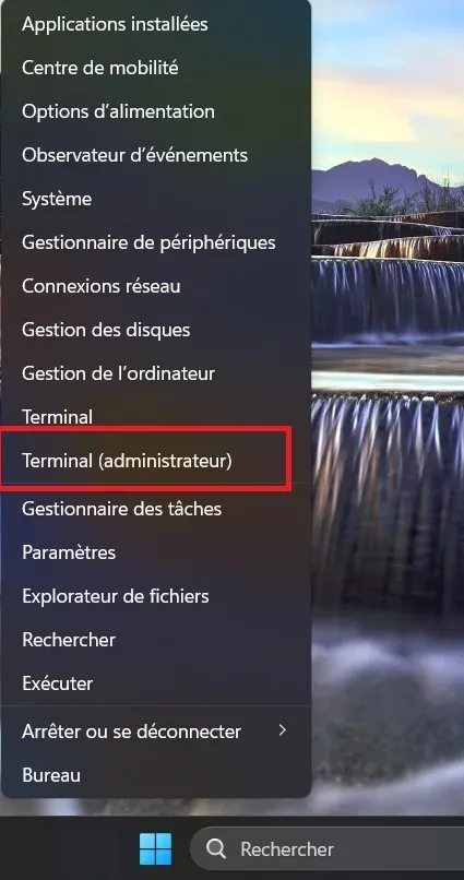 Cliquez sur le menu Démarrer (l’icône Windows en bas à gauche)